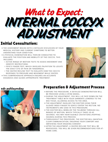 During your consultation, Dr. Ashley will thoroughly assess your condition, discuss your health history, and determine if internal coccyx manipulation is the right treatment for you. This includes a careful examination of your spinal and pelvic alignment to identify areas of tension or misalignment. You will have the opportunity to ask questions and learn about how this unique approach can help you find relief and improve your quality of life.